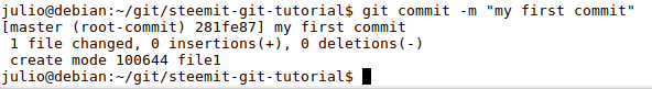 Once the repository is cloned, we need to move inside its folder by typing the command cd <our-repository-name>. In my case it'd be cd steemit-git-tutorial.