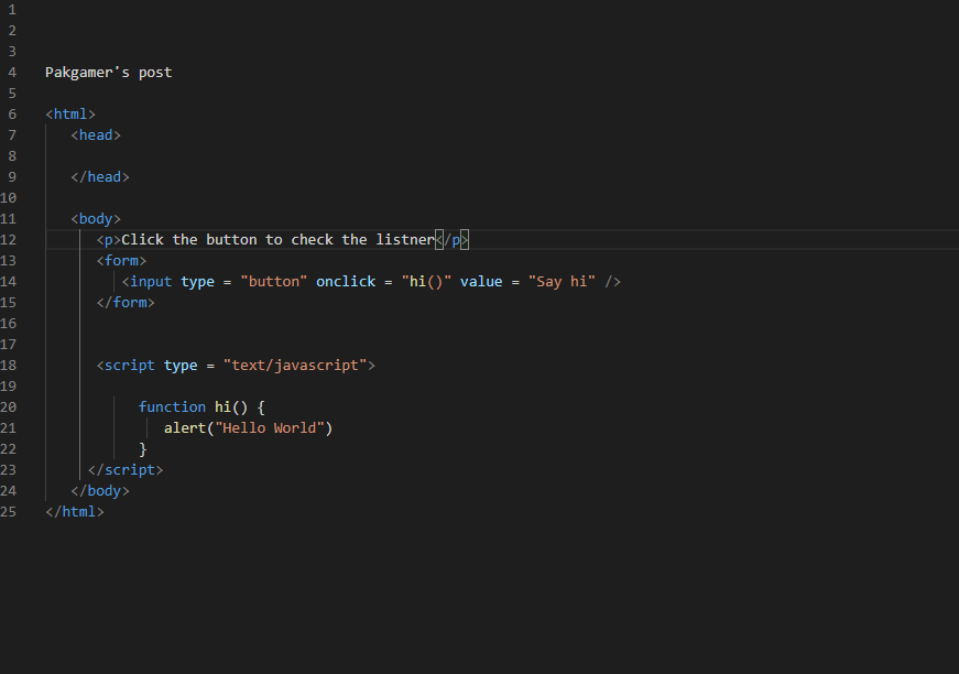 To understand the Events in javascript we will discuss and try it by running the code on visual studio code. There are a lot of events in javascript language but here in this tutorial, we are going to cover some important events only because we are learning very beginning so with the passage of time we will move to advance. So let's start with some basic events.