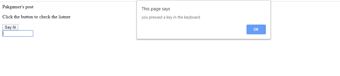 alert("you pressed a key in the keyboard")