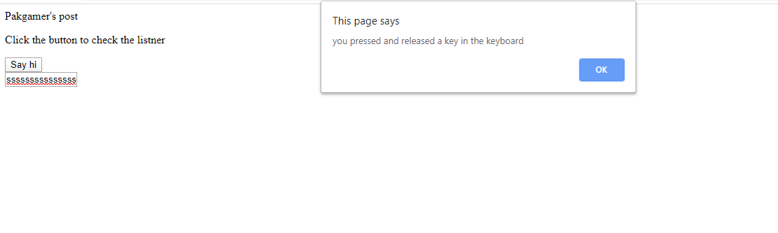 alert("you pressed and released a key in the keyboard")