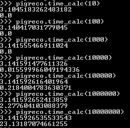 Measure for each of the methods how much time is needed to get it correct to the nth digit ranging n from 0 to 10. 0 meaning that the result is 3.xxx . The result from 10 should be included.