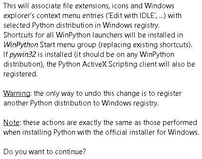 This will create shortcuts for all of the programs included in WinPython, and will also automatically associate file extensions with the correct program.
