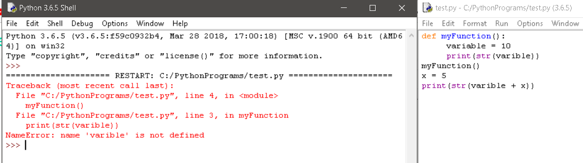 This code would not work. This is because 'variable' is only declared in myFunction, and can not be globally accessed (most of the time)
