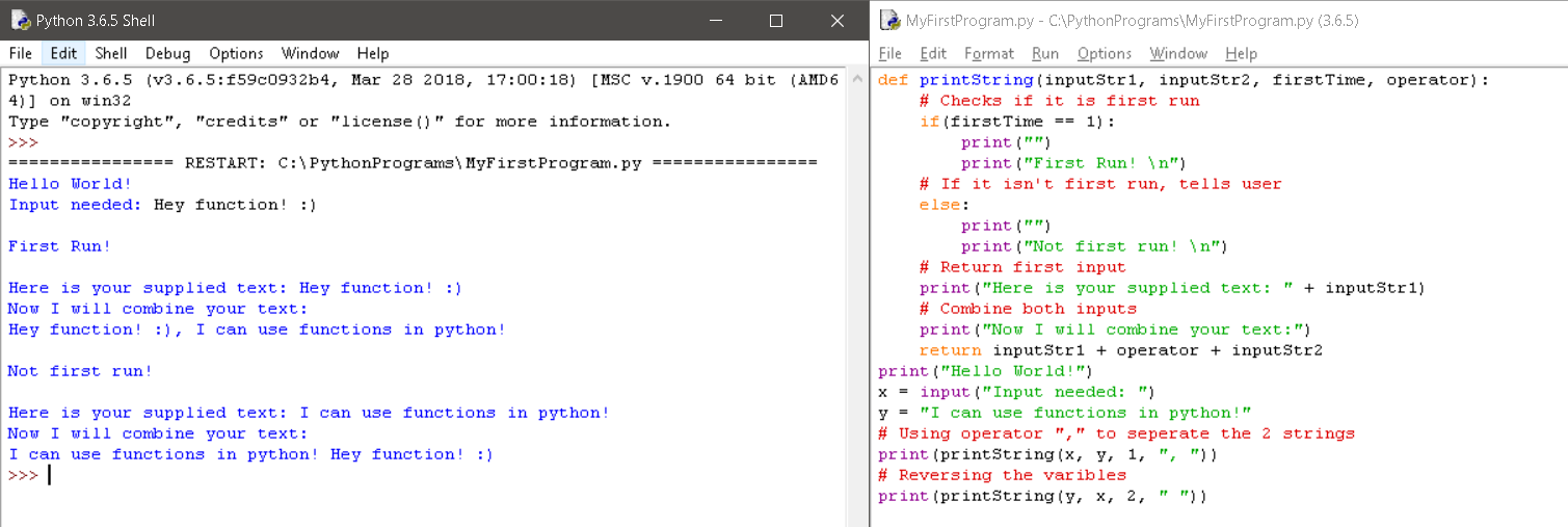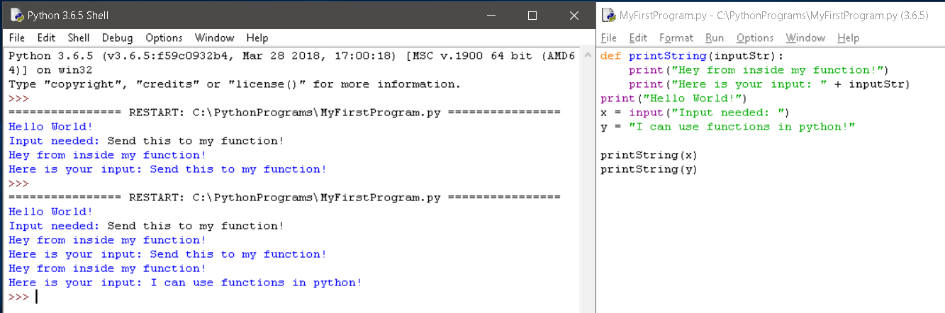 Today I taught you how to use functions and use variables in conjunction. This will give you a basic understanding of how to make complex programs for user input, etc.