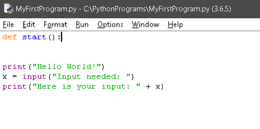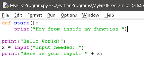 Now, underneath your "def" line write a simple print string line.