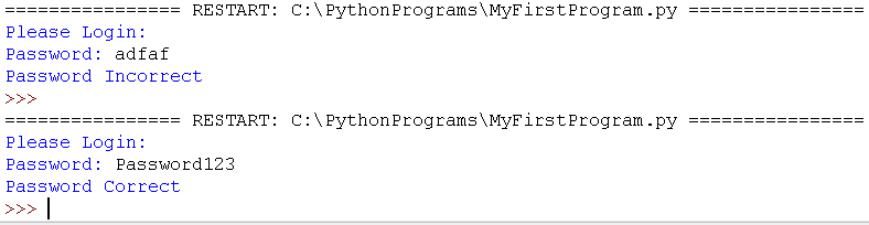 Now that that works, lets add a statement to check if the password is false.