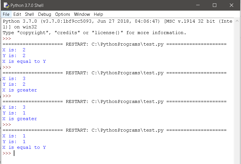 print("X is equal to Y")