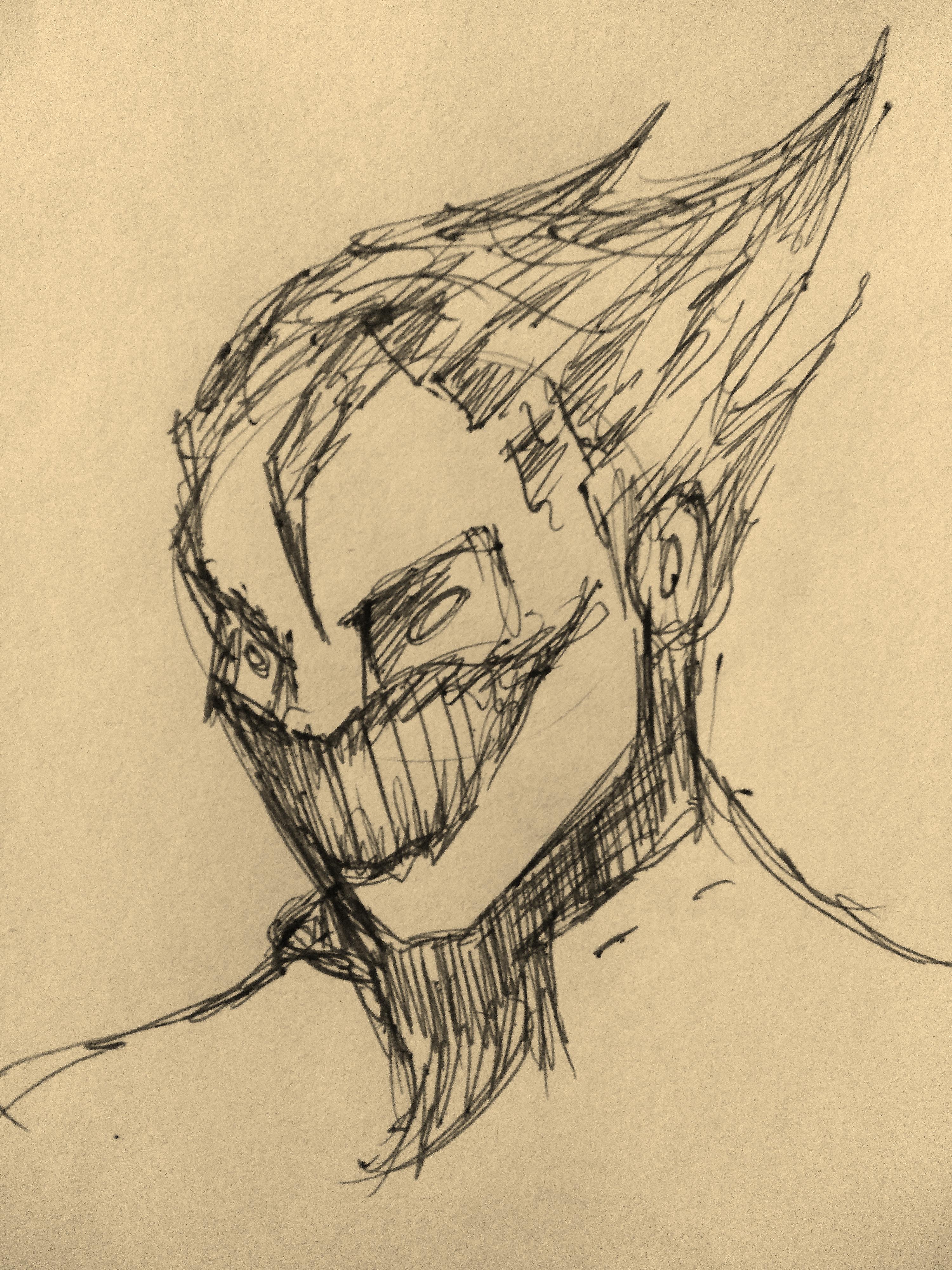 hello friends, i made a new ball point pen sketch today. its a weird looking sketch. it is a little bit like the venom character. but it is not him.