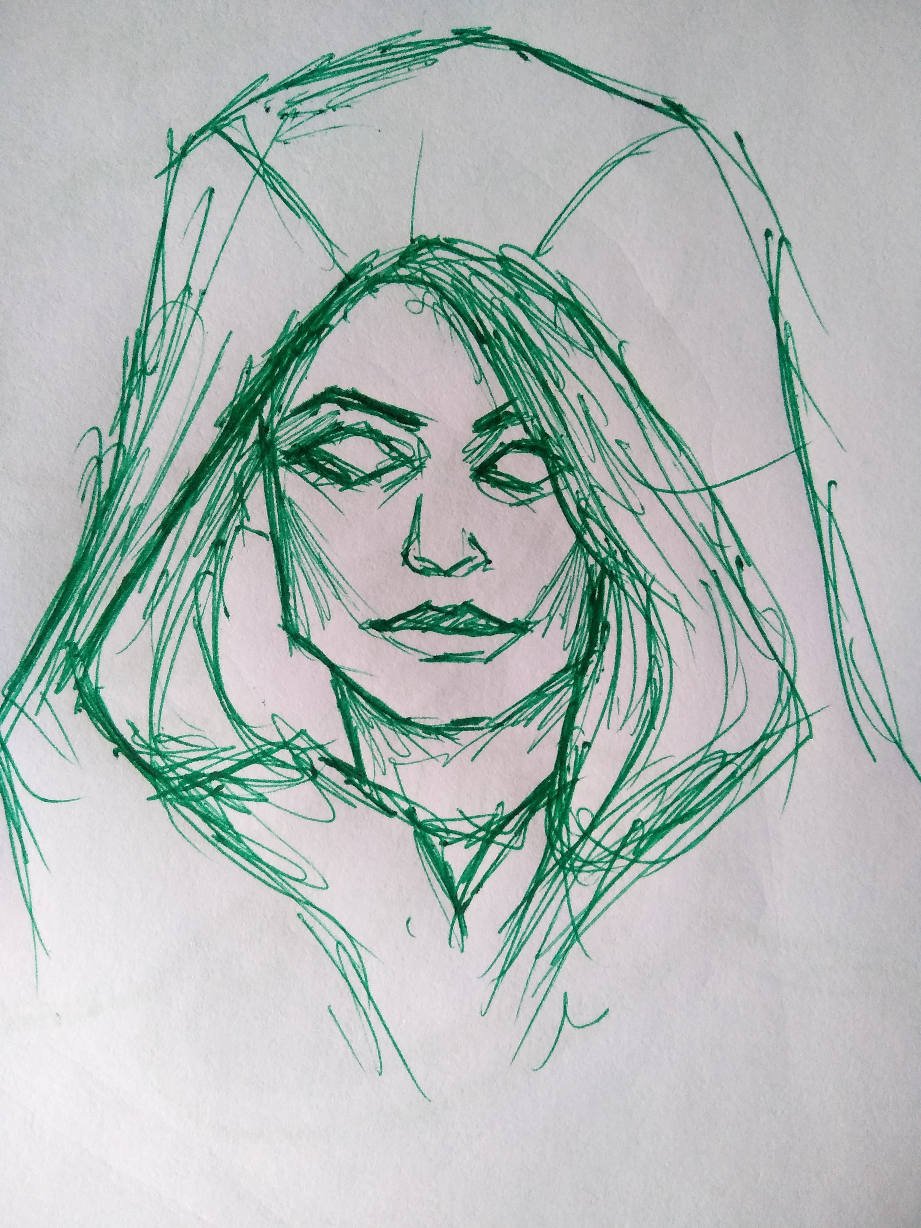 Hello friend today I am going to share and you ballpoint pen drawing. This is a drawing of a person who is wearing a huge head scarf that is hiding most of her head.