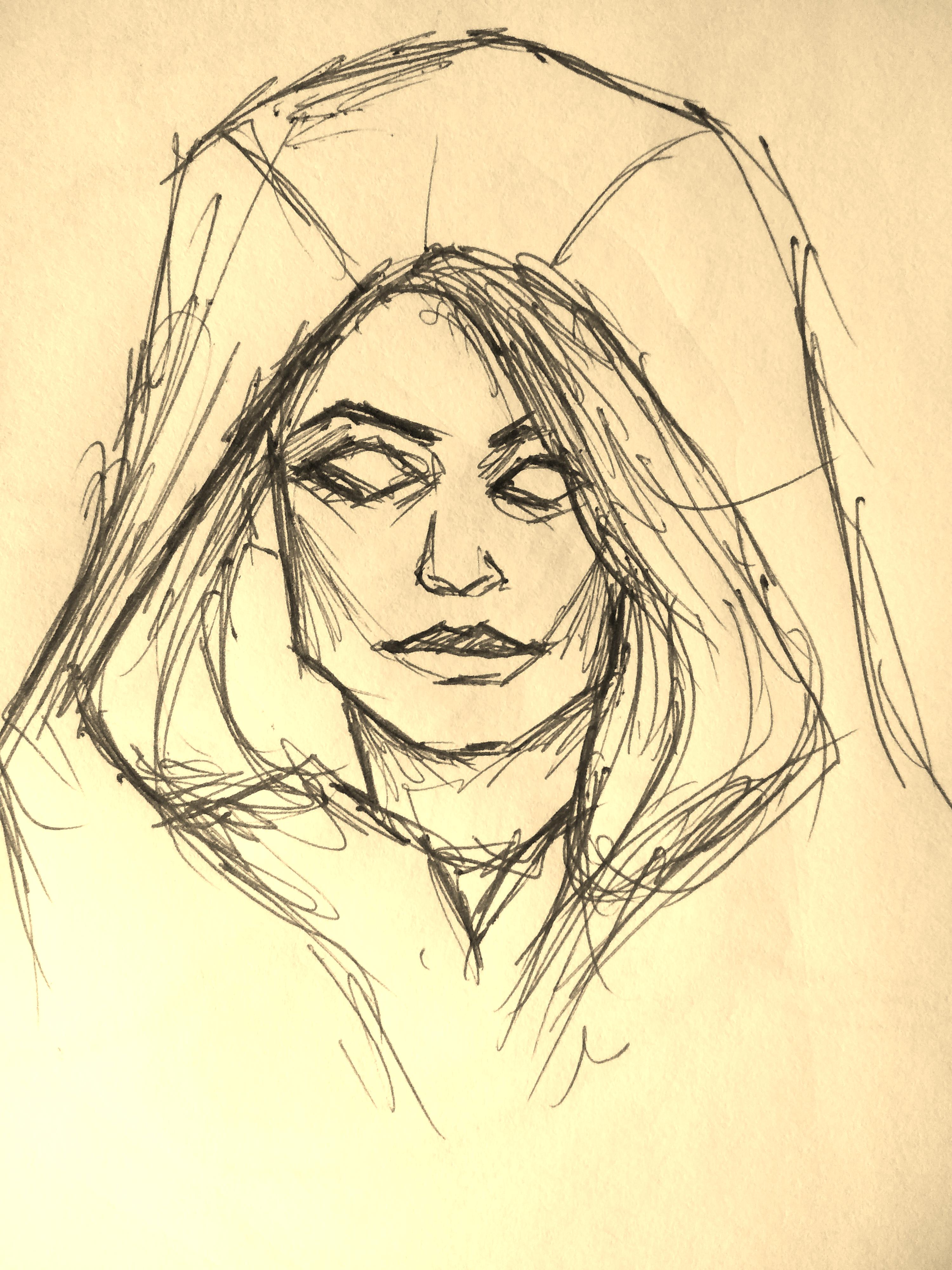 i kept her eyes blank so when i color this drawing i can make them glow as if she is some kind of witch