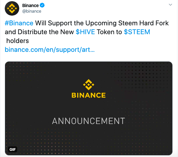 Binance tweet- https://twitter.com/binance/status/1240267889933860867