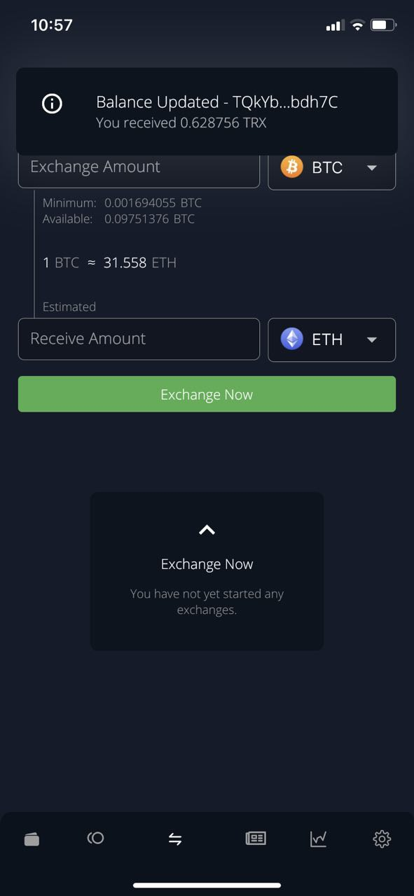 In the exchange section you can swap crypto directly in the App.