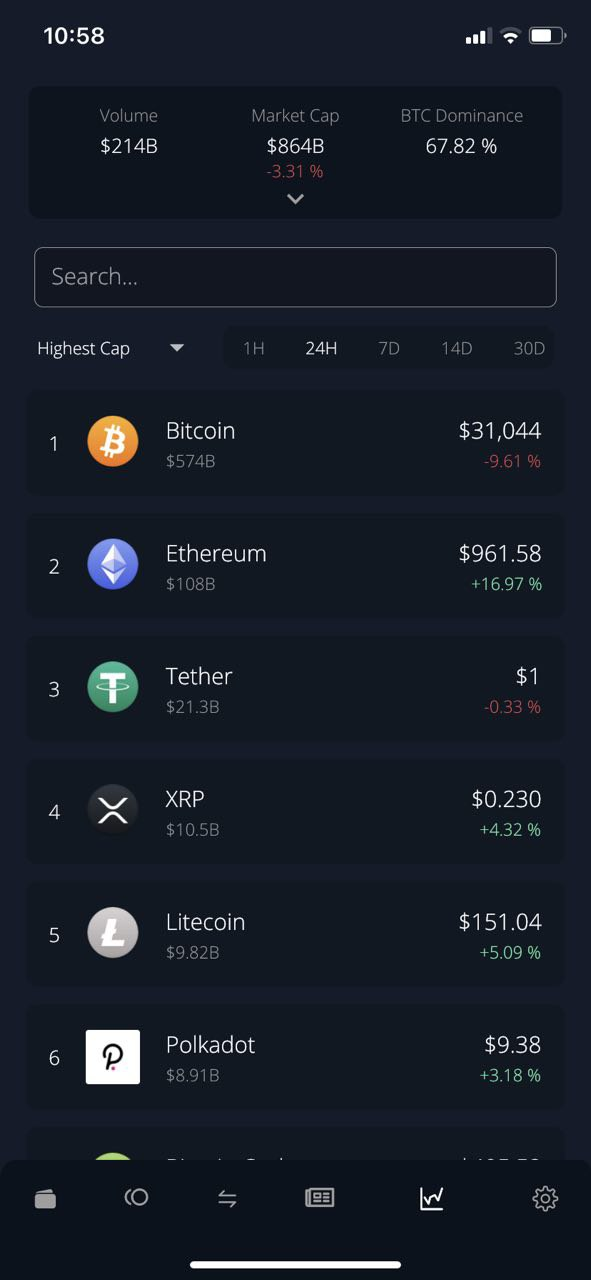 In the news section you can check the latest Crypto info