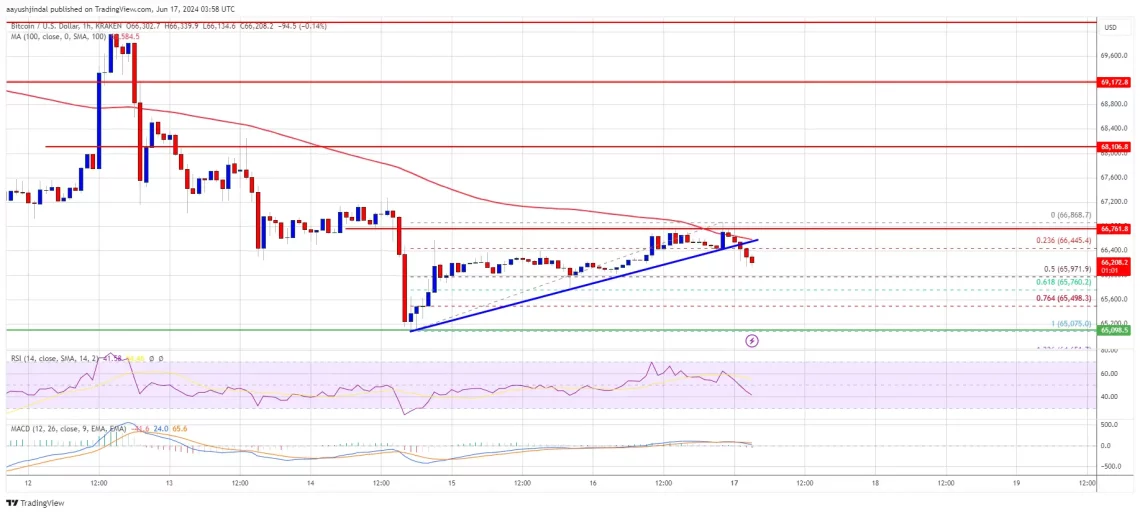 On the upside, it is facing resistance near the $66,500 level and the 100 hourly Simple Moving Average. The first major resistance could be $66,850. The next key resistance might be $67,000. A clear move above the $67,000 resistance could start a decent increase and push the price further higher.