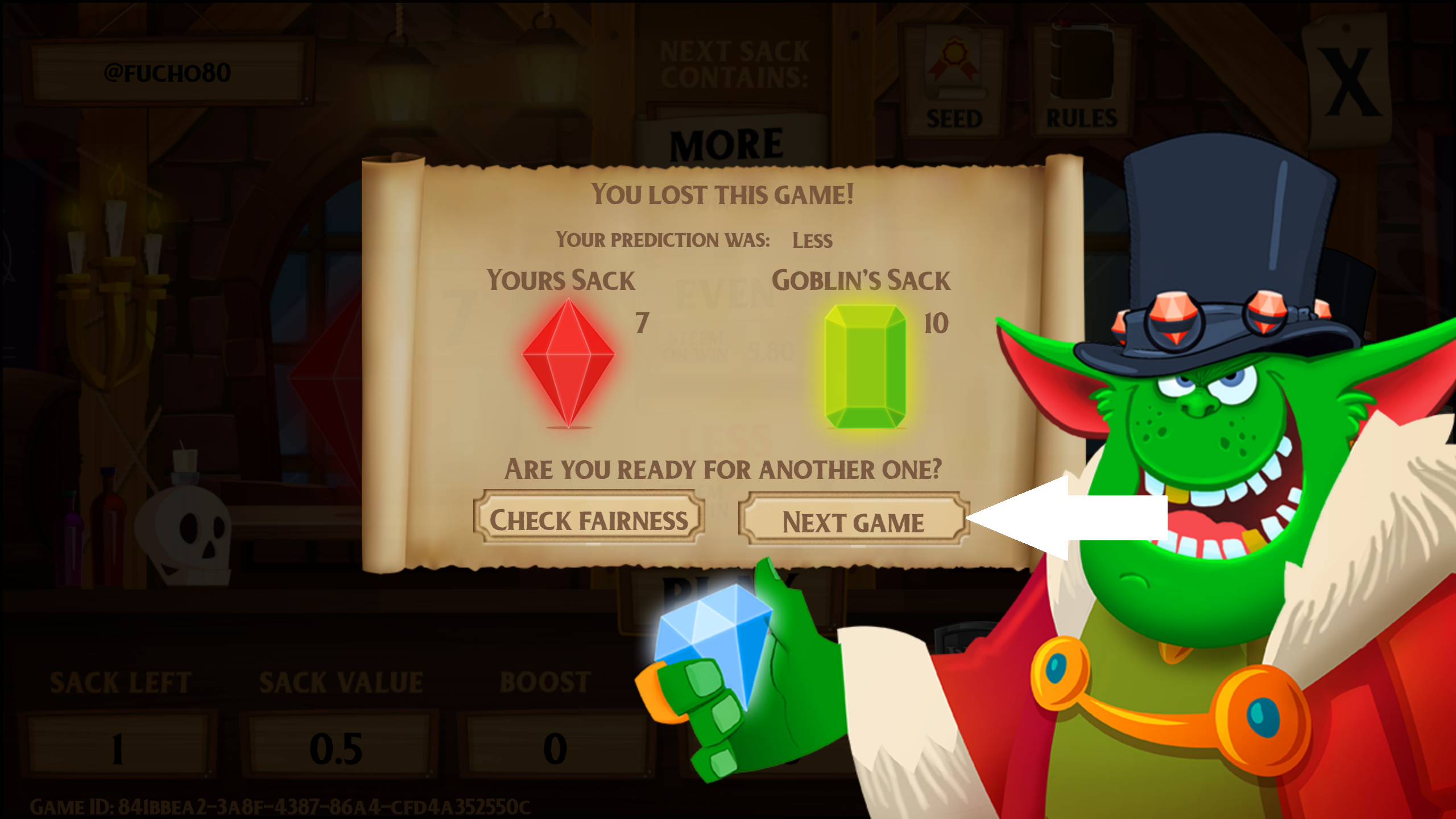 It is a game recently presented in the blockchain of steem, and is based on a prediction system where you should try to guess if the amount of SACK you own is MORE, EVEN OR LESS to those of the tavern goblin, the odds of winning In this game they are really good and you will have a lot of fun while you earn STEEM which is automatically deposited in your wallet in each round of the game.