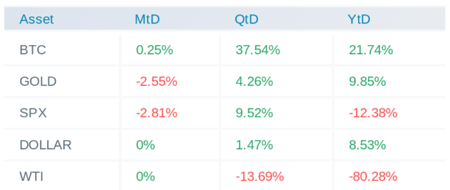 Bitcoin was designed to be a deflationary currency. The issuance rate of Bitcoin decreases with time and it makes it scarcer. The demand for Bitcoin comes from the demand of gold standard. Bitcoin’s inflation will drop to 1.8% after halving and such low inflation will make it a more attractive asset. If we look at all macro assets, worst performing has been WTI crude with YTD almost 80% negative return and BTC has outperformed all including gold and silver with 20%+ YTD return.
