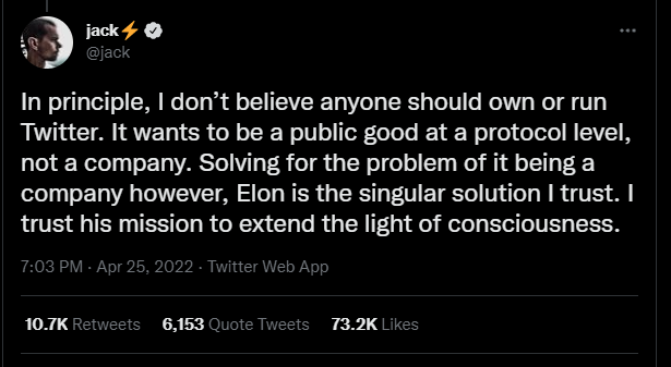 Well, let's be honest... is it the full over-centralization for a platform the size of Twitter to be owned by literally a single person? I wonder how most crypto enthusiasts would be ok with it!