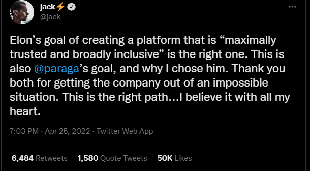 And to be fair, Elon seems to have some positive additions to Twitter up his sleeve. For example, he mentioned that he would convert all of Twitter's code into an open-source form, which presumably means everyone will be able to see how their accounts are being treated and what is being done with their data. He also mentioned that he will expand the availability of blue checkmark for anyone who pays a monthly fee for the company. The goal is to erase fake accounts and generate an additional source of income for Twitter which will enable to reduce dependence on advertising and make more Verified accounts, providing greater security and trust. Even Twitter former CEO Jack Dorsey sent strong words of support to Elon Musk describing him as "the singular solution".