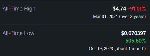 So, if we look at the data, we realize that the all-time high is at 4.74 dollars but to make sure what was the price where this token was floating for a good amount of time, let us look at the max chart data.