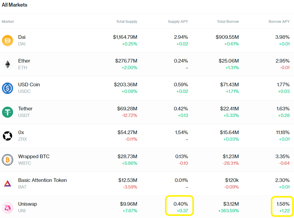 compound finance added UNI to their asset.