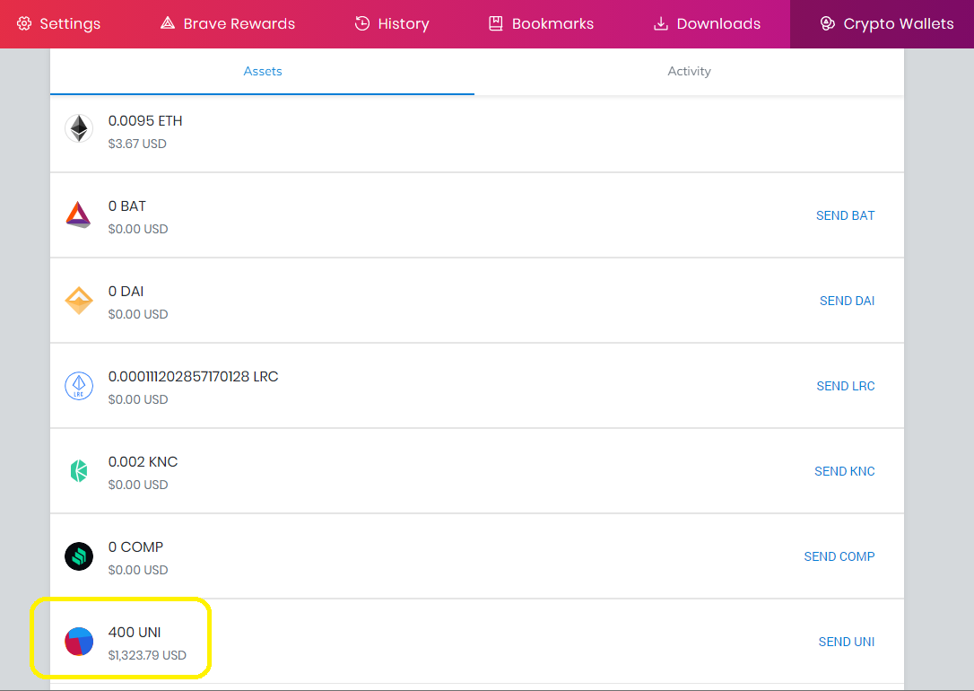 How to successfully claim UNI using Crypto Wallet (Brave wallet)