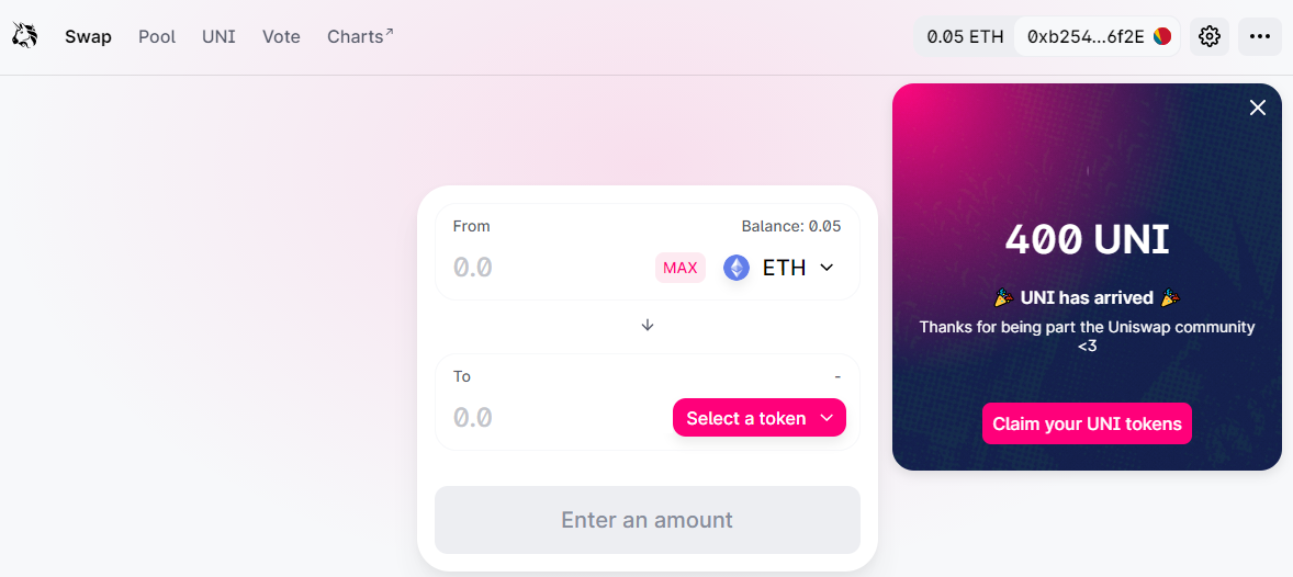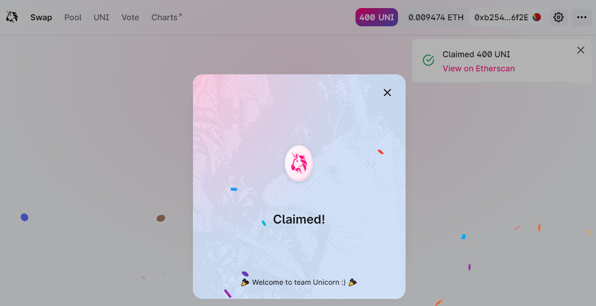 If you connected your wallet and used it, you can claim 400 UNI, even a failed transaction will get you qualified for this distribution 👇