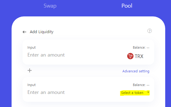 First of all, move over to https://justswap.io and move to SWAP>POOL. Here you need to click the button ADD LIQUIDITY.