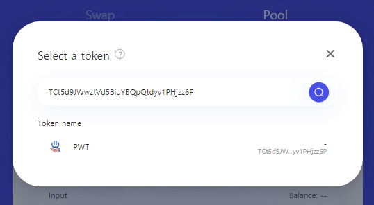 Click the PWT token to choose it for creating a liquidity pool.