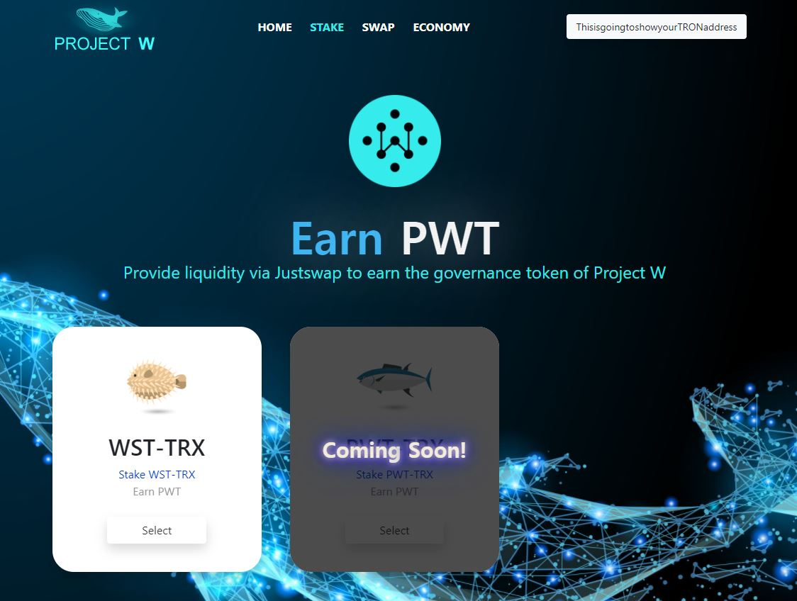 You can farm the governance token from Project W, PWT when providing liquidity and staking it. The first pool is planned for WST-TRX and is going to open timely with the launch of the platform Project W.