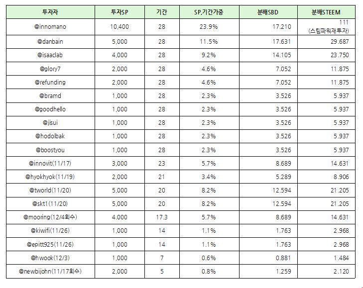 - 투자의 장벽을 낮추기 위해 1,000SP = 1구좌 투자를 받습니다.