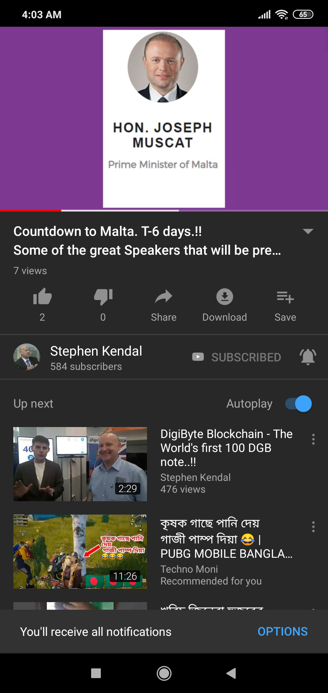 You are viewing a single comment's thread from:RE: Countdown to Malta. T-6 days..!! Selection of some of the great Speakers that will be presenting at the Malta AI & Blockchain Summit next week. (Promo video)View the full contextshakilkhan (75)in #promo-steem • 7 years ago sir @stephenkendal subscribe your youtub chennel. Posted using Partiko Android