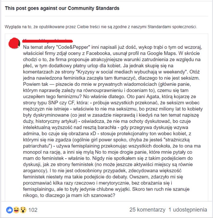 Facebook stosuje profeministyczną cenzuręadloz (25)in #propaganda • 7 years ago (edited)Oto wymowny przykład: #censorship #feminism #facebook #polish