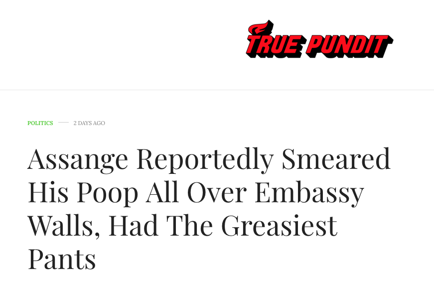 Yes it's a demented reality we find ourselves in. All of these media outlets give us the illusion of diversity of opinion but they're all stenographers reading from the gov/military/intel scripts. It's obvious to those that are paying attention but for the masses that simply read a few headlines in their favorite propaganda rag from time to time, they'll just pick up the tidbits in the titles. "Assange is a the house guest from hell (which the average person probably can relate to in their personal lives) and he's covered in buckets of shit... and so is his cat - so yeah you totally understand why we had to kick him out, right?"