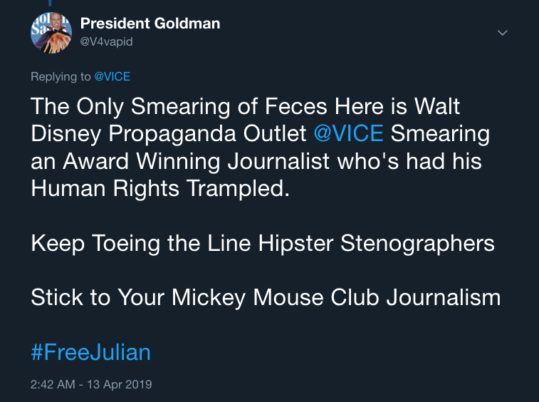 Another disgusting, distasteful, and slanderous hit piece on the embattled founder of Wikileaks by Disney controlled VICE.