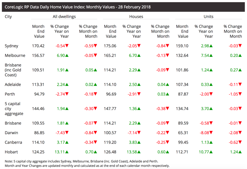 Here areCoreLogic's latest capital city results: