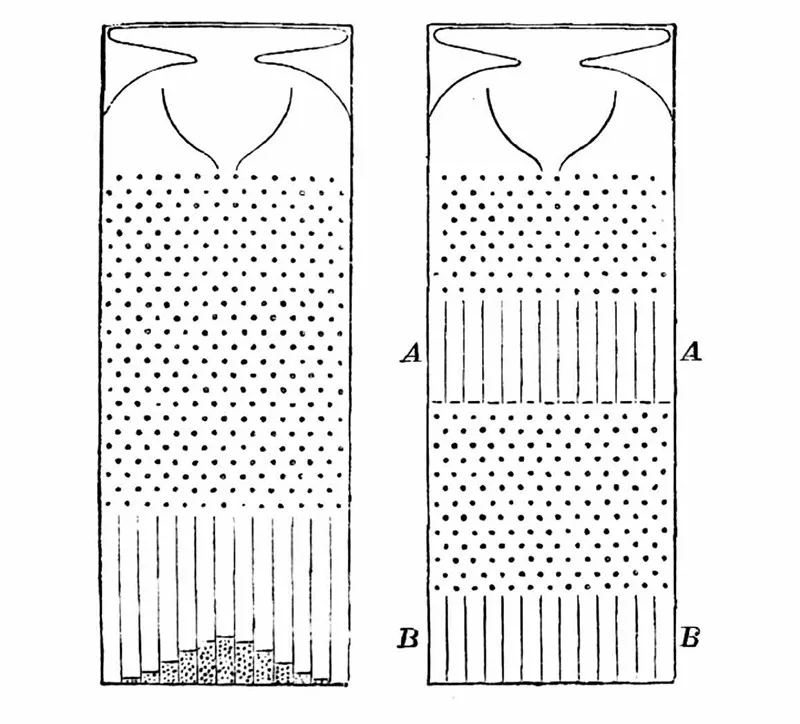 The experiment is here. It has just begun. Galton puts an identical board under the original flat, as shown in the figure below.