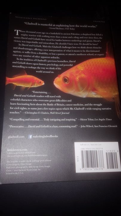 So what is Malcolm telling us? We look at these huge obstacles in life and believe we can not overcome our problems but what if our greatest disadvantages were our best advantages! David beat Goliath not because the odds were against him but because the odds were in his favor. He took his strengths, found the giant's weakness, and exposed it.