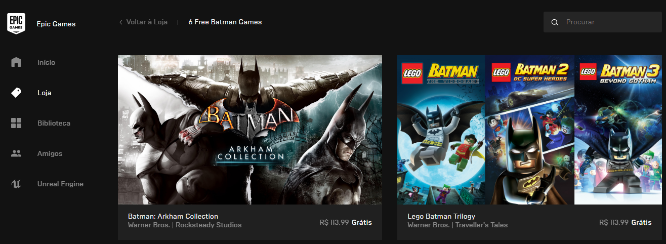 #Batmanday Seis jogos do Batman gratuitos!aiuna (58)in #pt • 7 years ago (edited)Em comemoração aos 80 anos do Batman a Epic Games disponibilizou seis jogos do Batman completamente gratuitos. A coleção Arkham e a trilogia Lego Batman. Achei isso o Máximo e vou aproveitar muito! #blog #game #art #batman
