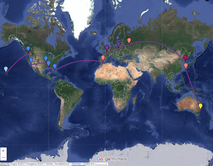 Bom, acho que já perceberam que são latitudes e longitudes né?!?!