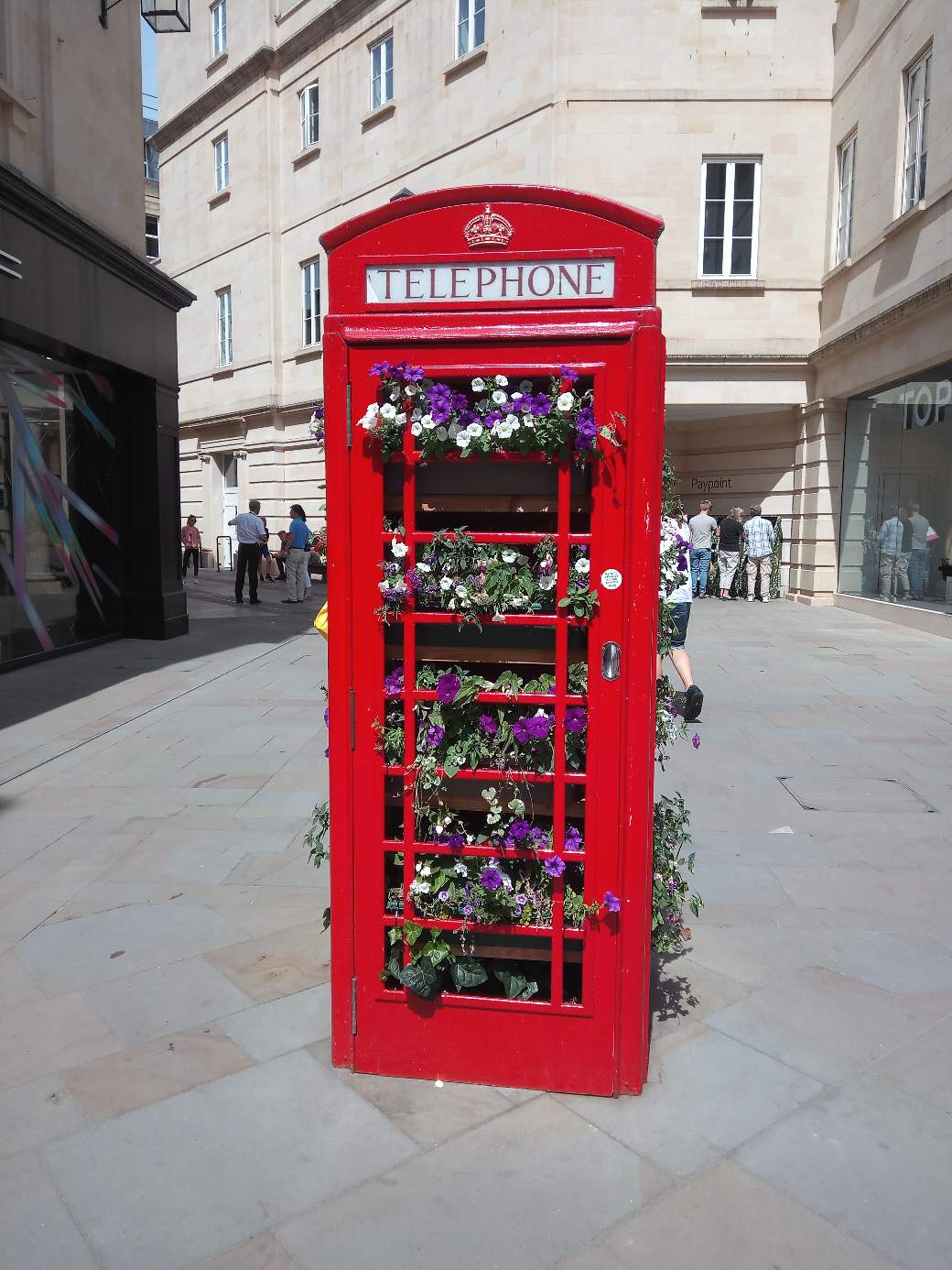 Essa cabine florida foi fotografada na lindíssima cidade de Bath onde a escritora Jane Austen viveu por um tempo. Com a facilidade da telefonia móvel que está cada vez mais acessível, as cabines telefônicas já não são tão necessárias mas são um ícone da Inglaterra e ainda é muito bom vê-las por lá.