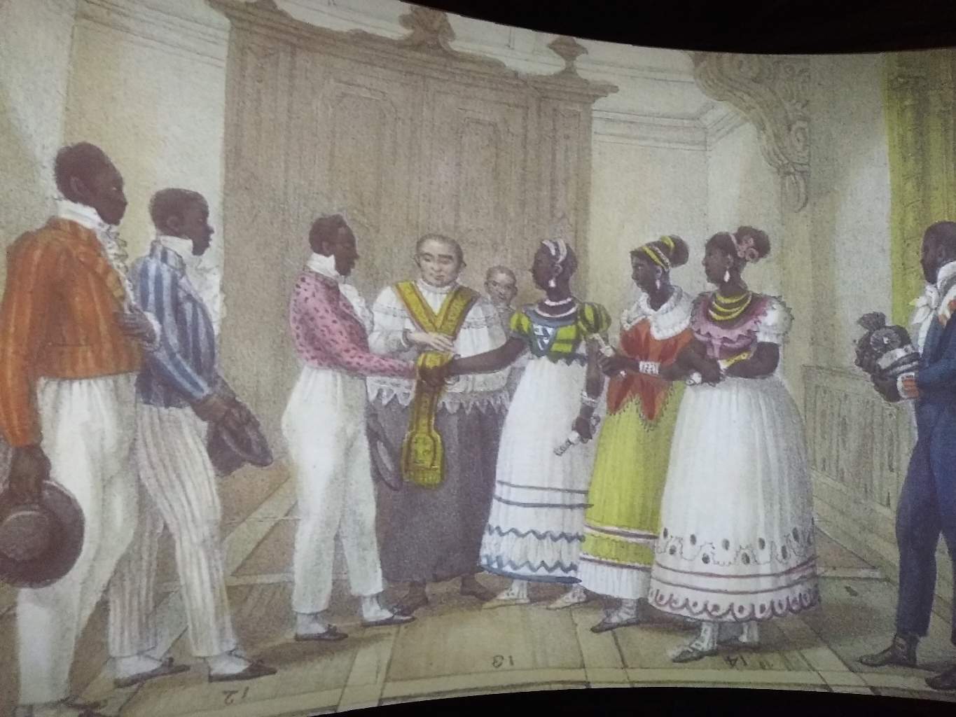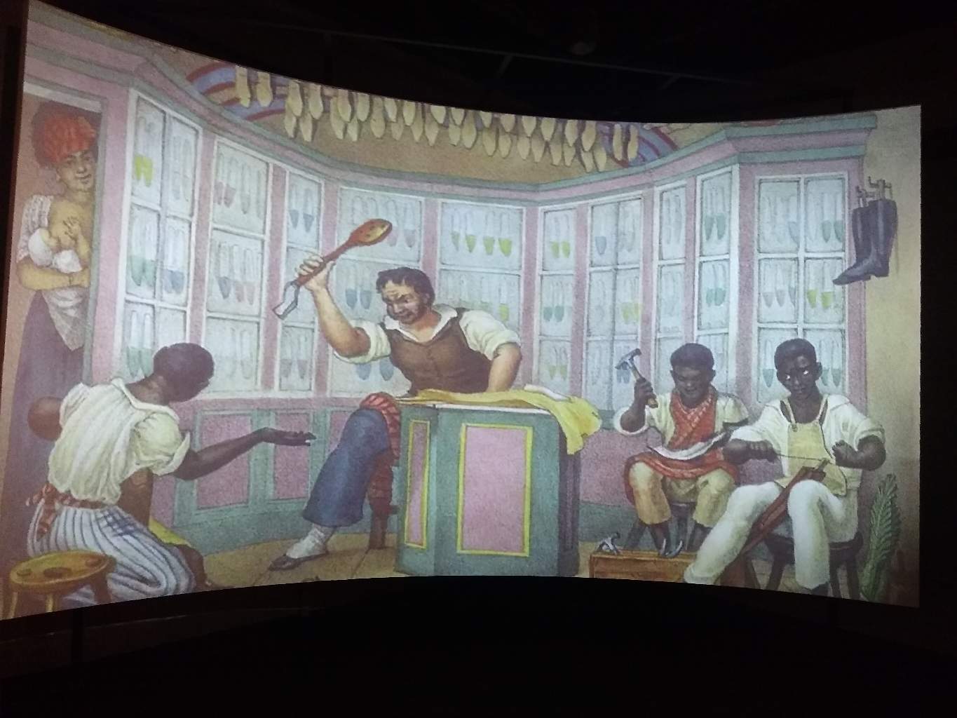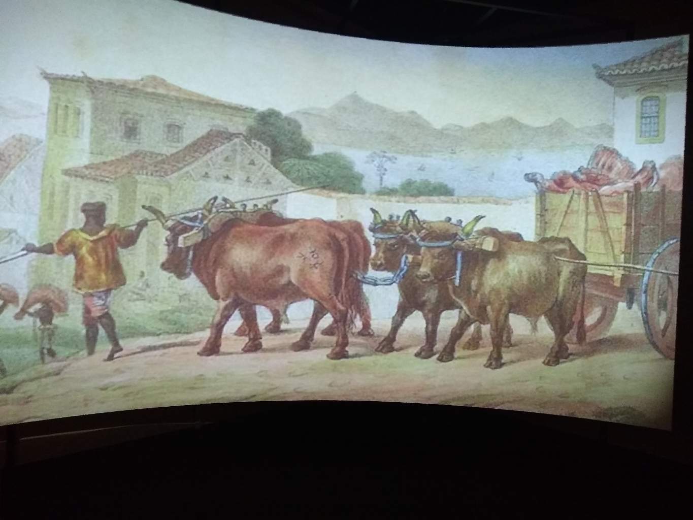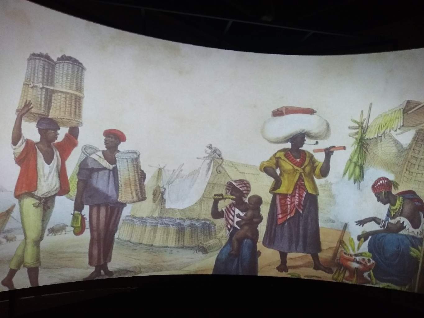 Amostra do painel em exibição no Museu, demonstrando o dia a dia do Brasil colonial.