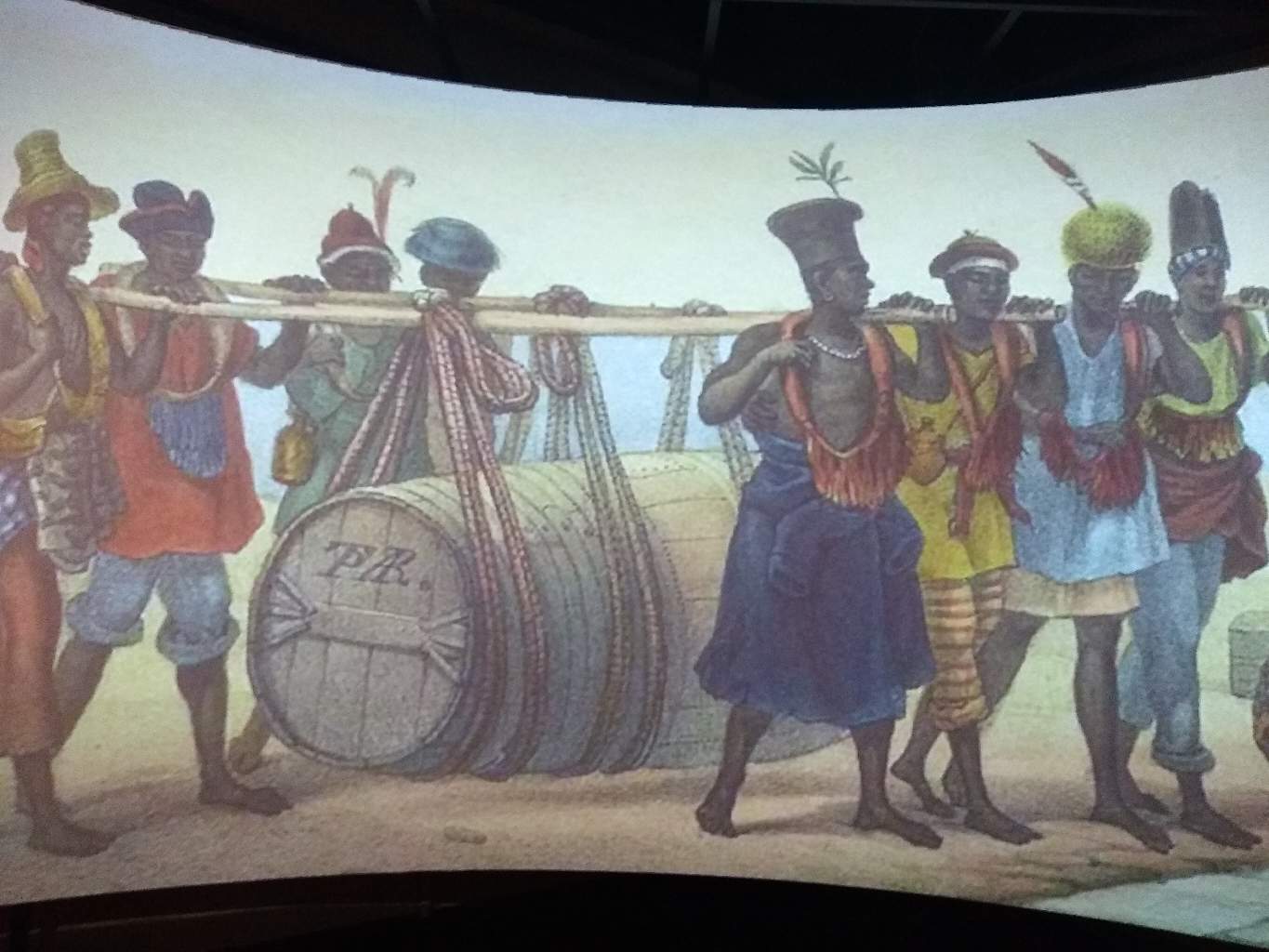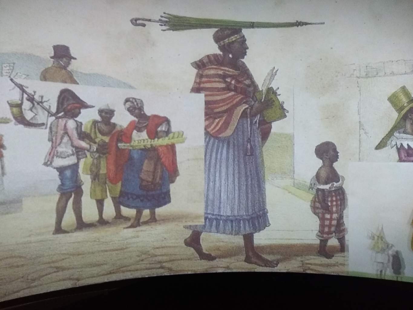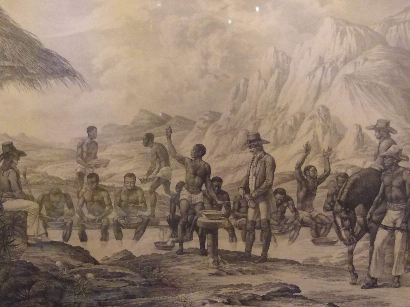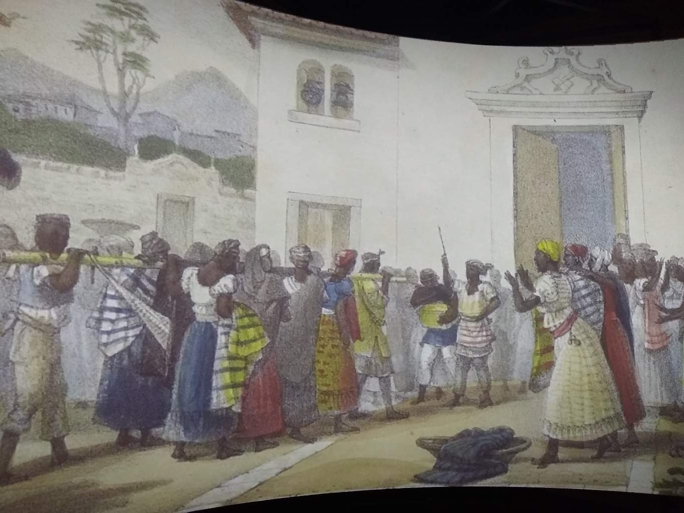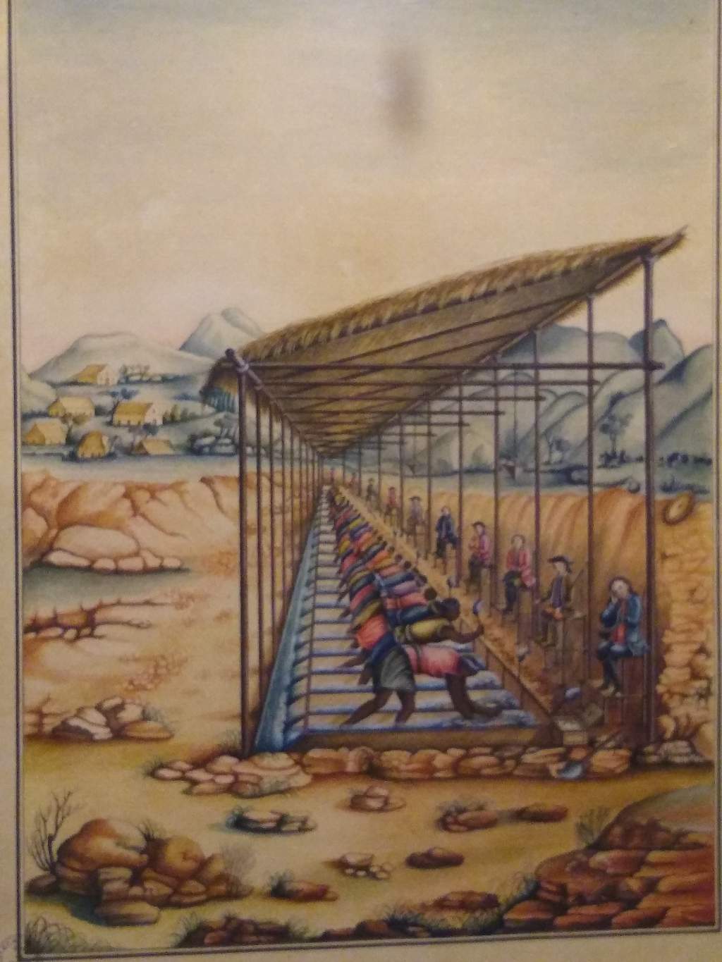 Amostra do painel em exibição no Museu, demonstrando o dia a dia do Brasil colonial.