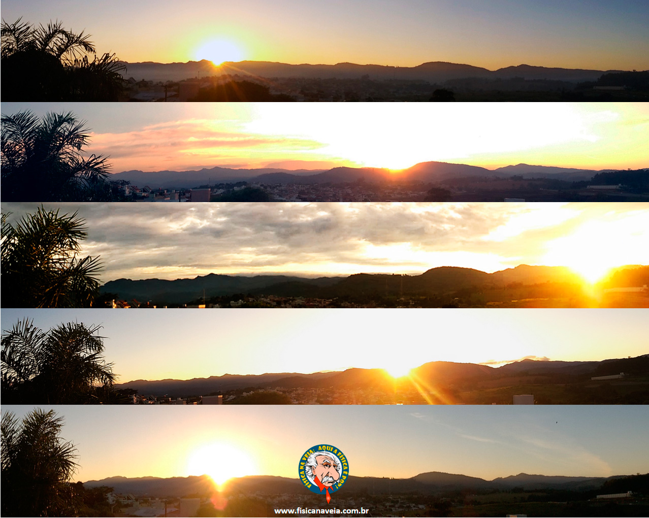 Se você observar o nascer do Sol ao longo do ano, notará que a nossa estrela não desponta no horizonte sempre no ponto cardeal leste mas ao redor deste, exceto em duas datas específicas chamadas de equinócios em que o Sol nasce exatamente ao leste. Nos dois solstícios o Sol nasce mais afastado em relação ao ponto cardeal leste sendo que no solstício de inverno (no hemisfério sul) o Sol tem o seu nascer num ponto do horizonte mais deslocado para a esquerda (a rigor, para o norte) e no solstício de verão (no hemisfério sul), como hoje, o seu nascer num ponto do horizonte mais afastado para a direita (a rigor, para o sul).