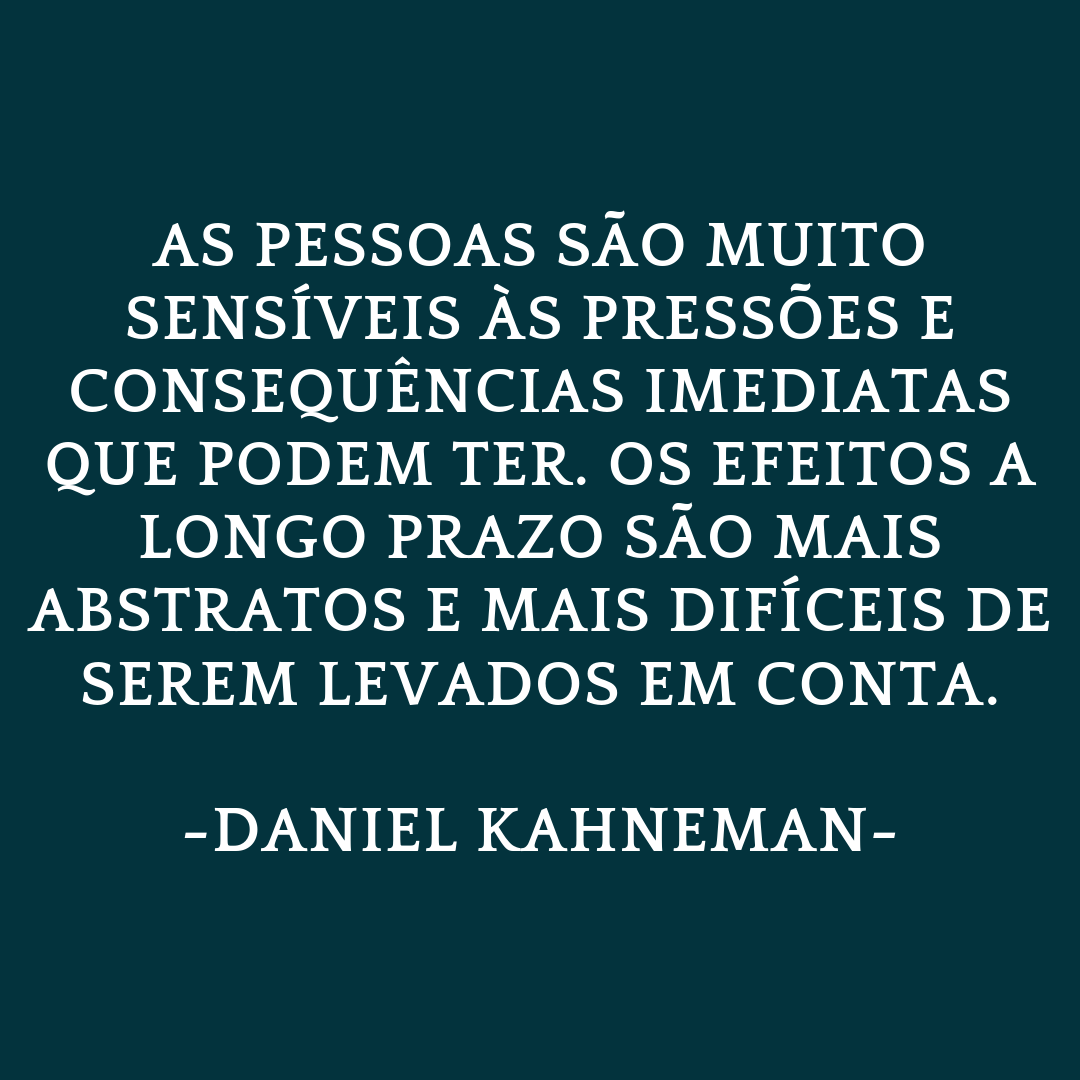 Temas difíceis de ser abordados pelos indivíduos, como decisões que demandam ações delicadas e imediatas, algo bem dito por Kahneman, levam uma sensação às pessoas de que o adiamento terá consequências bem distantes.