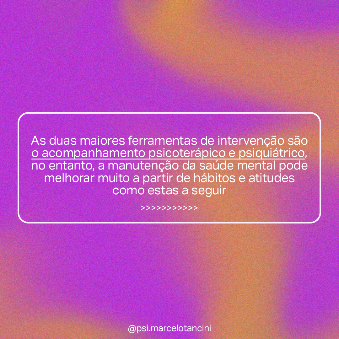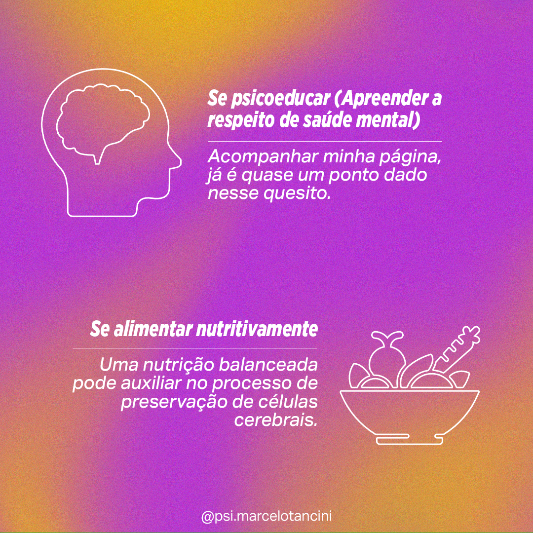 Como cuidar da manutenção da nossa saúde mental?steemCreated with Sketch.inicnat (45)in #pt • 4 years ago E ai? Me conta! O que achou das dicas? Siga-me nas redes vizinhas para mais dicas sobre saúde mental :) @psi.marcelotancini #health #psicologia