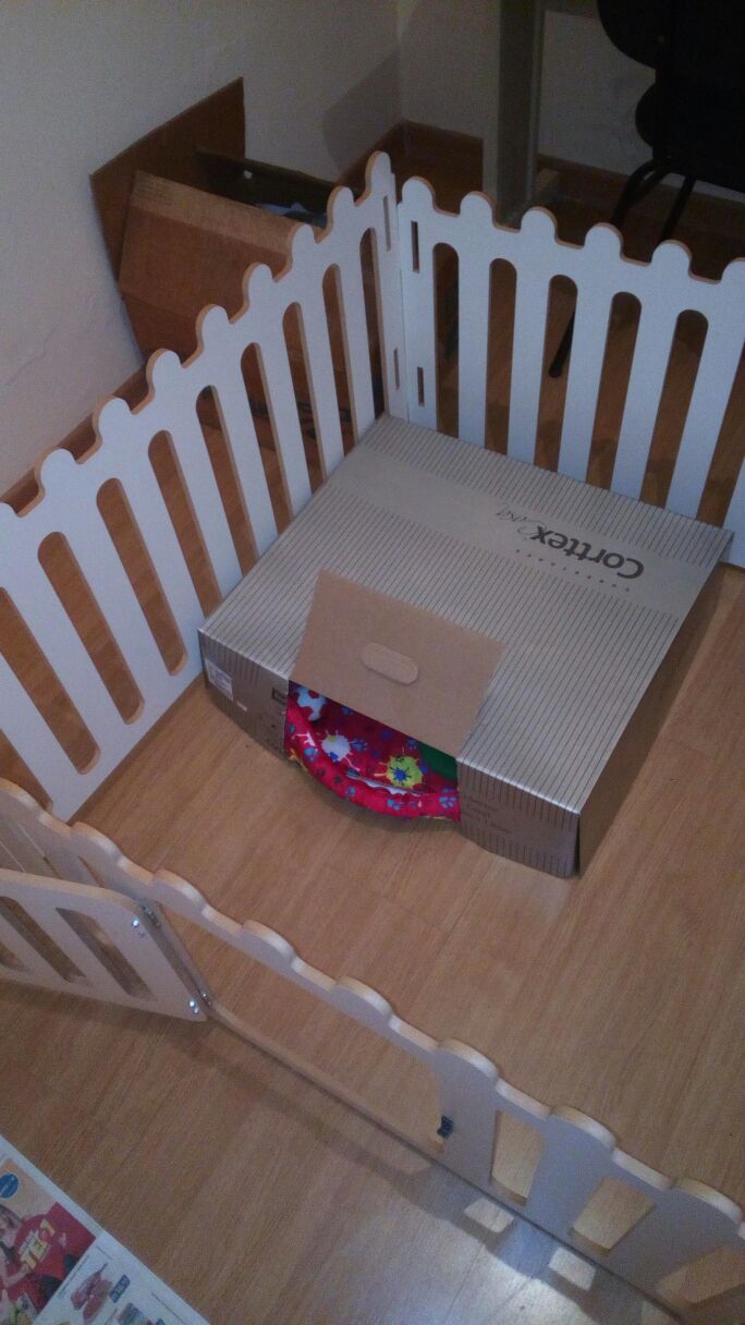 Um cercadinho muito legal no mercado livre para colocá-la enquanto filhote, até ela aprender a fazer xixi direitinho. Usei durante uma parte do adestramento.