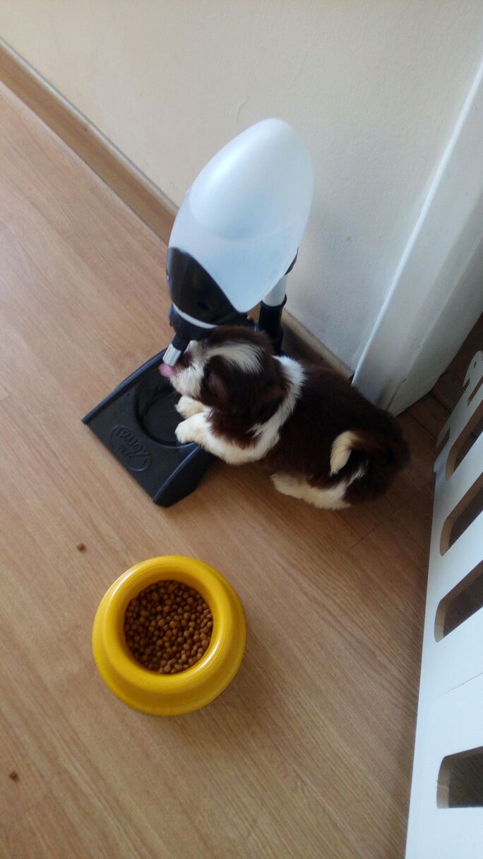 Um bebedouro de bilha, para não molhar os pelos do rosto, pois, os pelos molhados, além de deixar com uma aparência feia, podem trazer bactérias que causam doença.