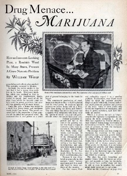 “Há 100.000 fumantes totais de maconha nos EUA, e a maioria é Negros, hispânicos, filipinos e animadores. Sua música satânica, jazz e balanço, resultado do uso de maconha. Esta maconha faz com que as mulheres brancas procurem relações sexuais com negros, animadores e quaisquer outros. ”