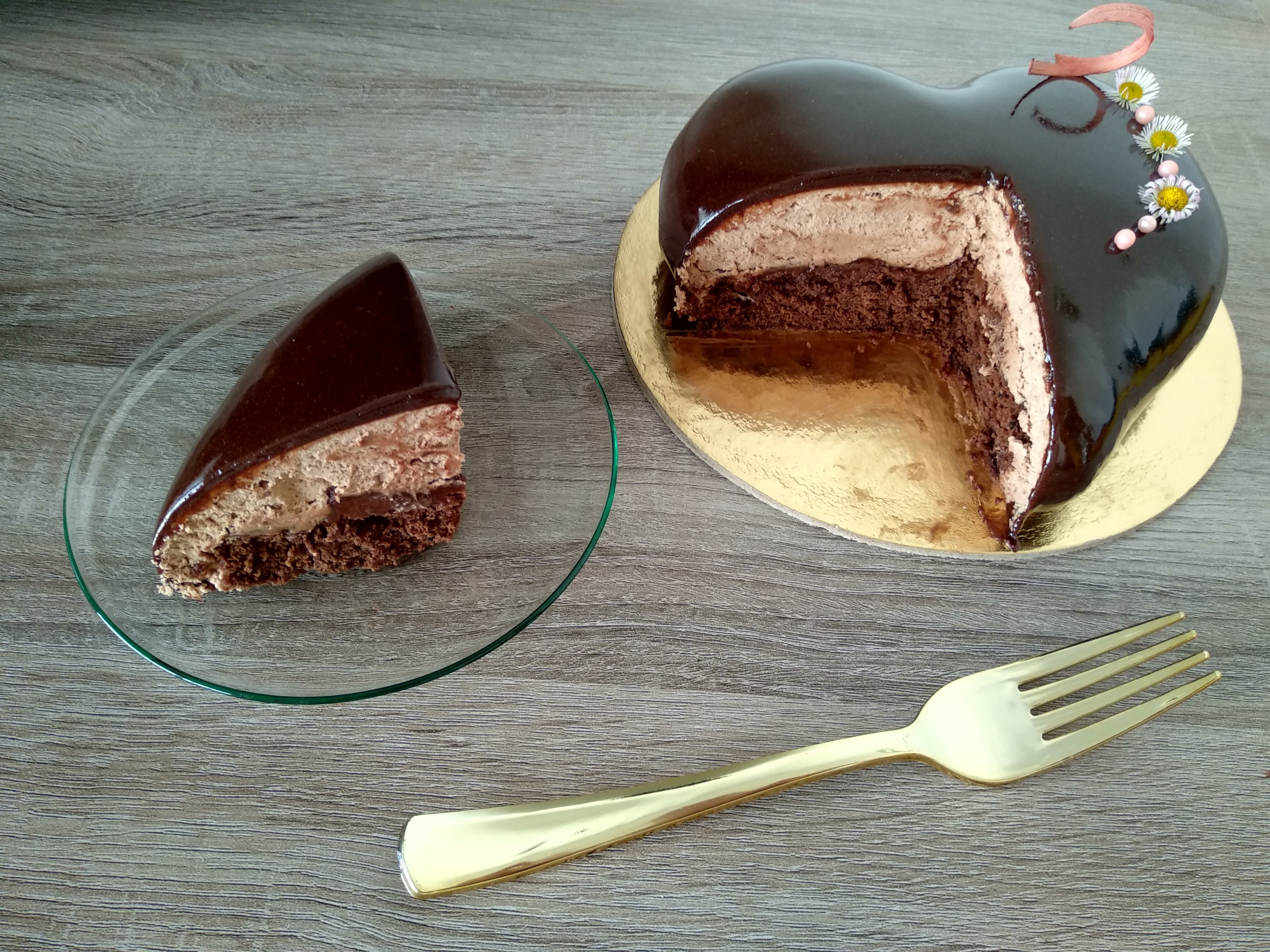Ora cá em casa já cá moram, não só, o Ovo da Páscoa Gigante e os três pacotinhos de amêndoas 😆😆😆, como também um bolo de mousse de Nutella com brownie e cobertura de Chocolate, com formato de coração.