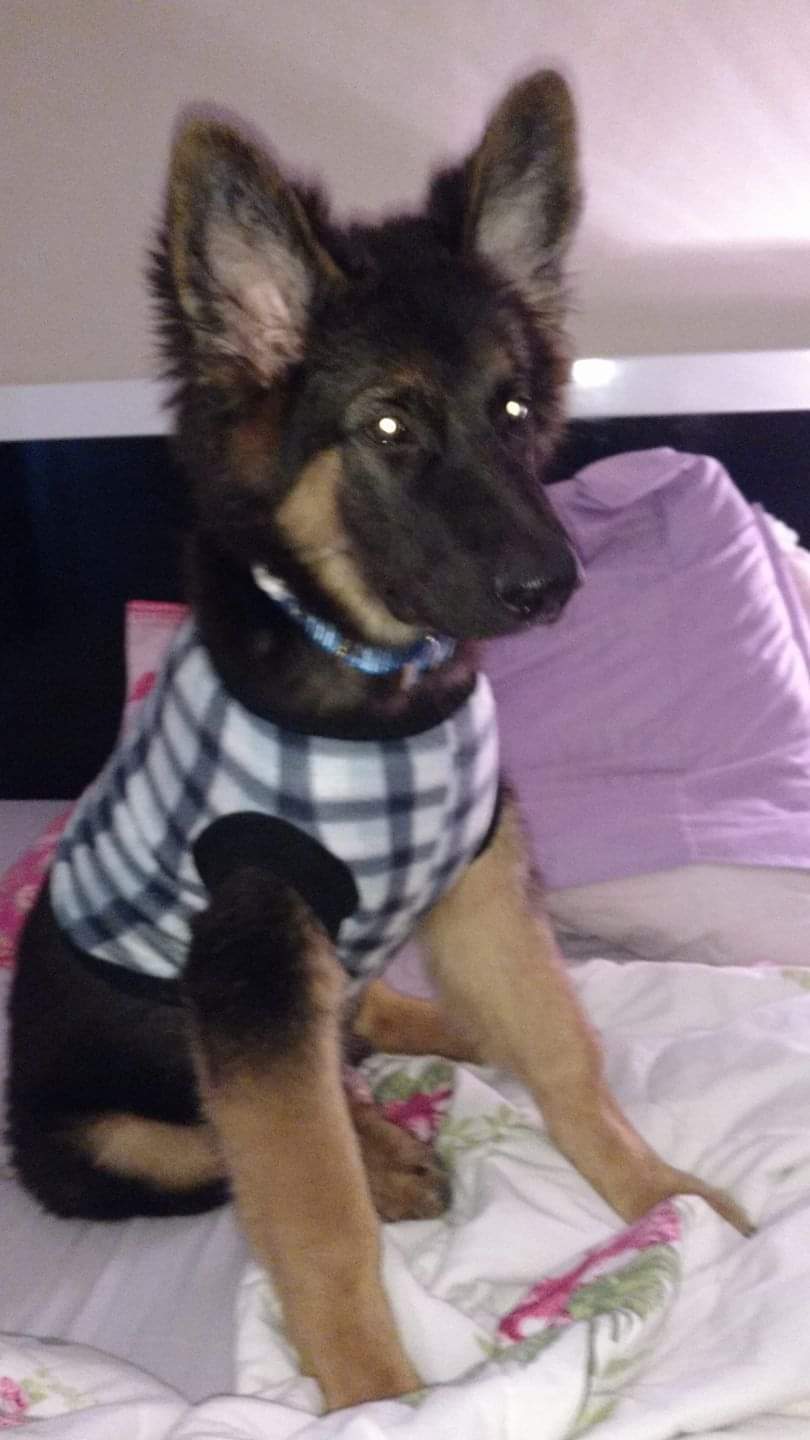 Bebês pastores alemão são calmos, centrados, maduros e muito inteligentes... Não é o tipo de cão que irá comer seus chinelos. Ele nunca comeu nenhum.